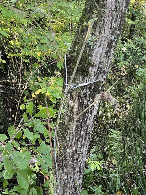 ワイヤーは倒木が頑丈そうであったので、倒木に固定しています。