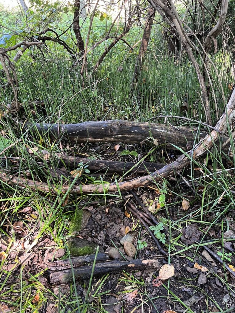もし、倒木がなければ、自分で倒木を持ってきて、獣道上に設置します。