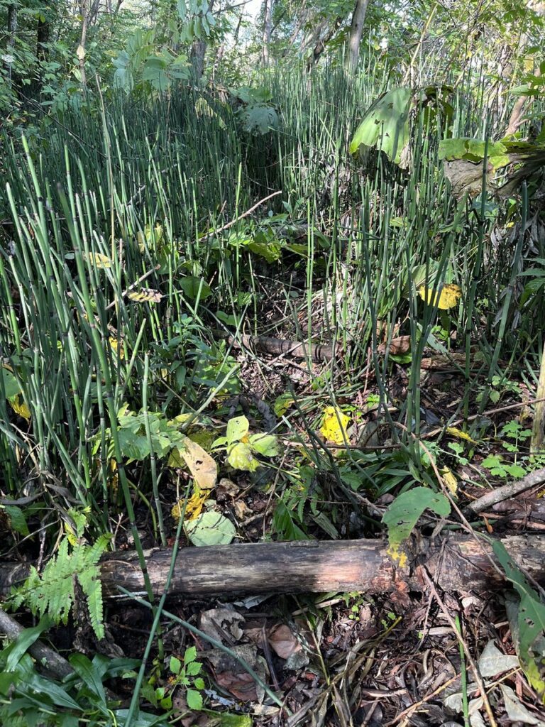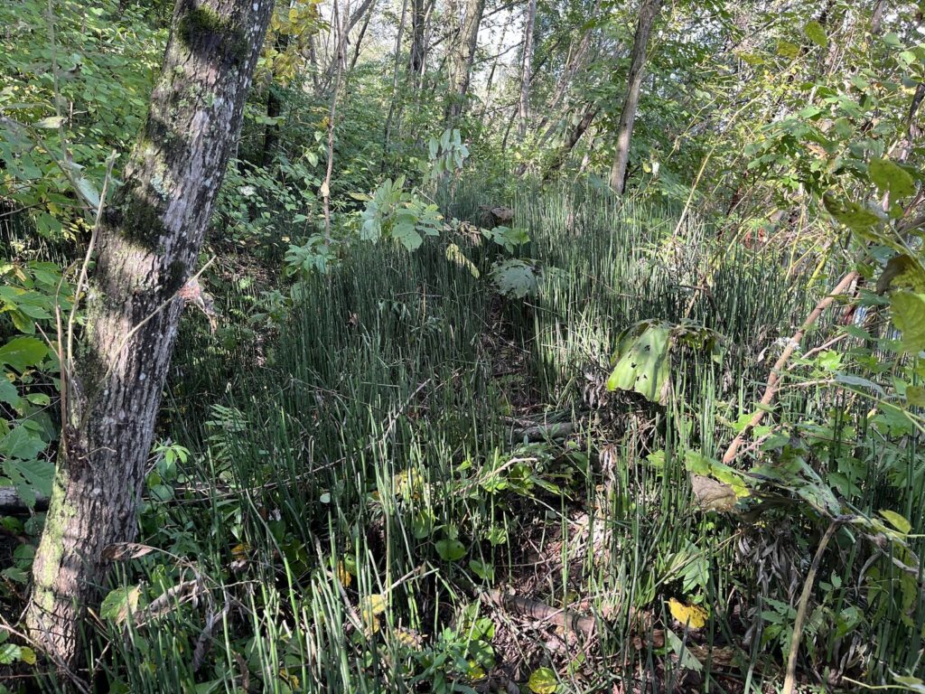 鹿が通っている獣道を見つけるとが出来たら、画像のように、獣道上で倒木があり、かつ近くにくくり罠のワイヤーを固定できる木がある場所を見つけます。