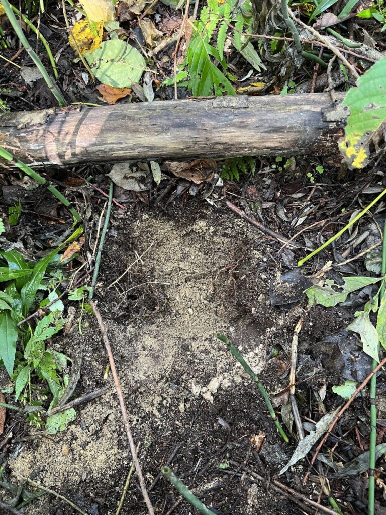 足を着きそうな場所を選定したら、そこに30cmほどの穴を掘ります。