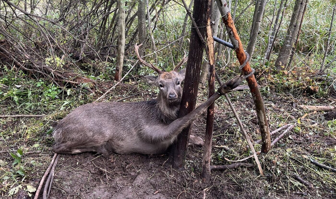 鹿を罠で捕獲する方法の一つにくくり罠があります。