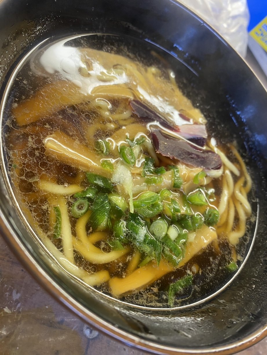 器にタレ、スープ、麺を入れ、お好みで、ネギ、鹿の生ハムを添えれば完成です。