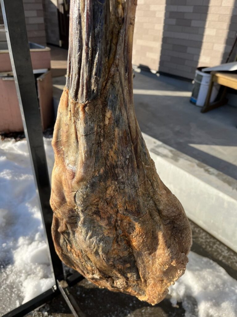 2024/12/21、鹿肉の生ハム原木を作り始めました。