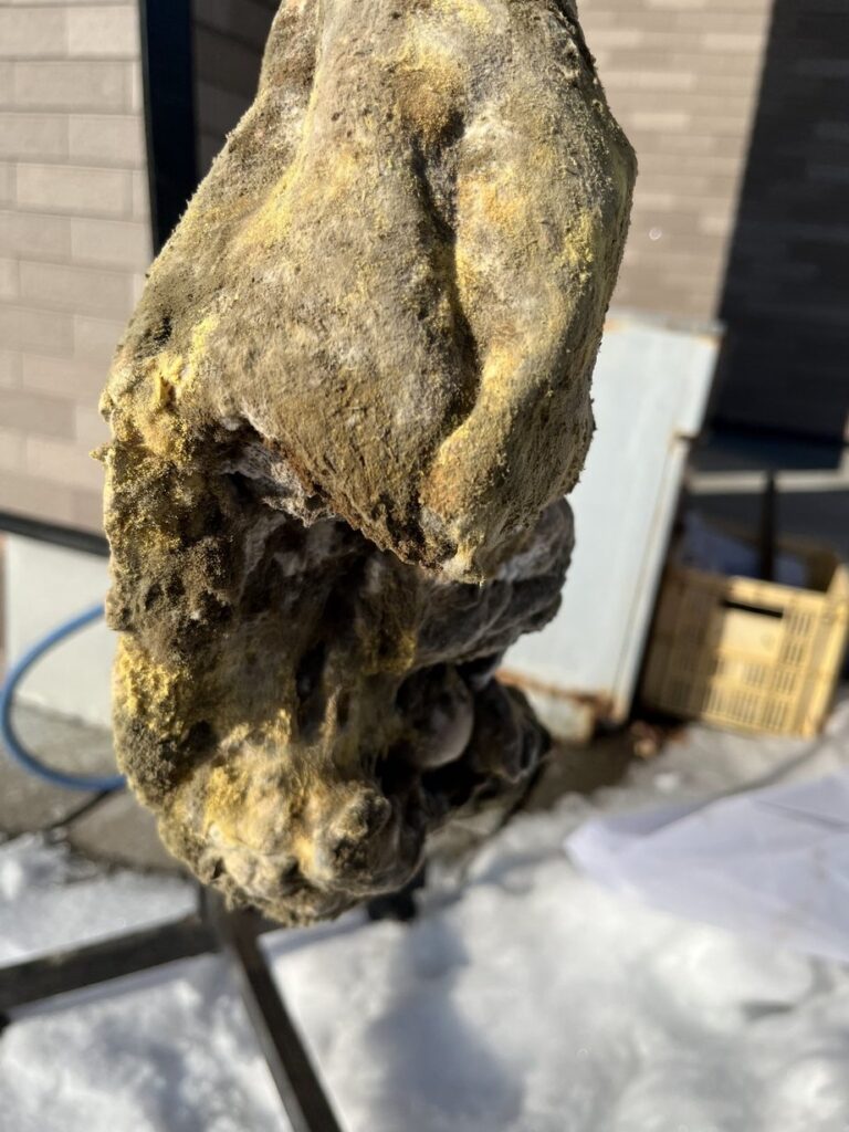カビが付いていた表面を削ぎ落とすと、生ハムっぽい色の仕上がりになっています。